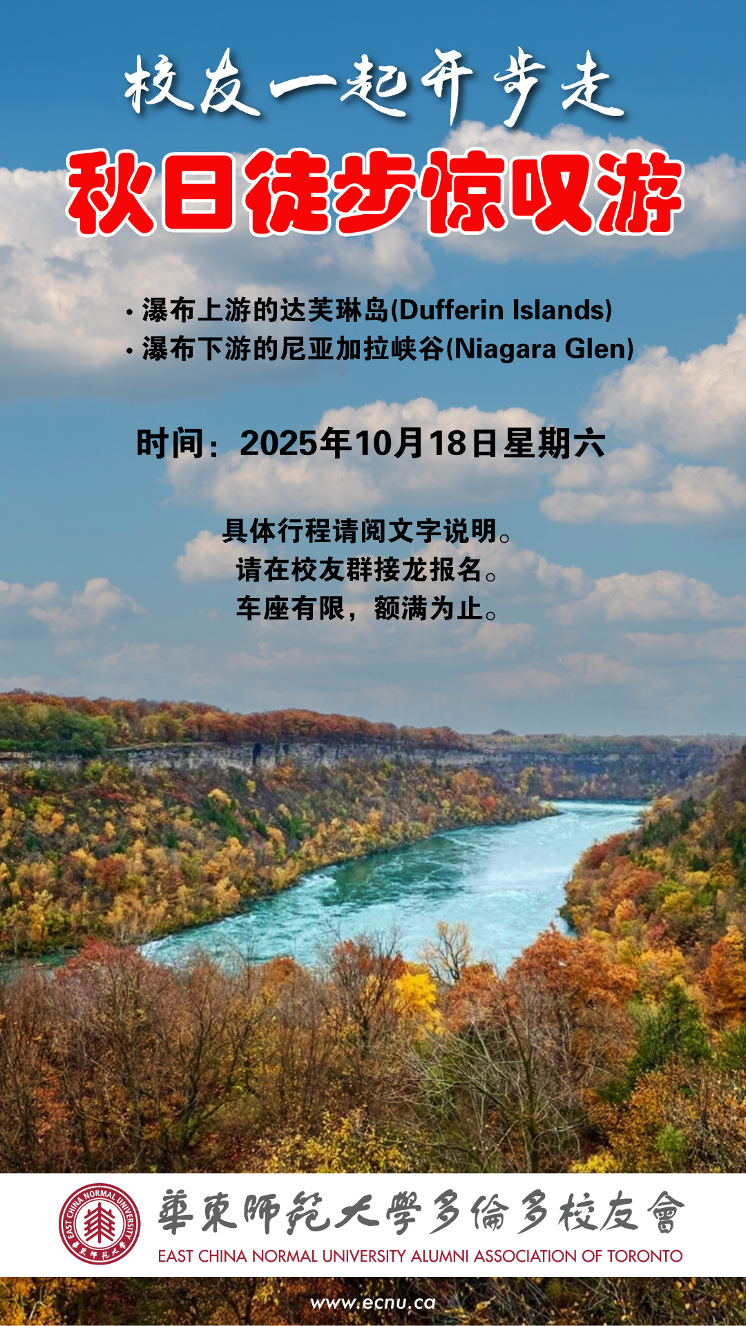 今年的金秋之季,校友会特请旅行达人为你精心设计了一日让你终身难忘的徒步之旅,避开常规路线,让你经历一番常人所不知的美丽与壮观之境。主要景点为: